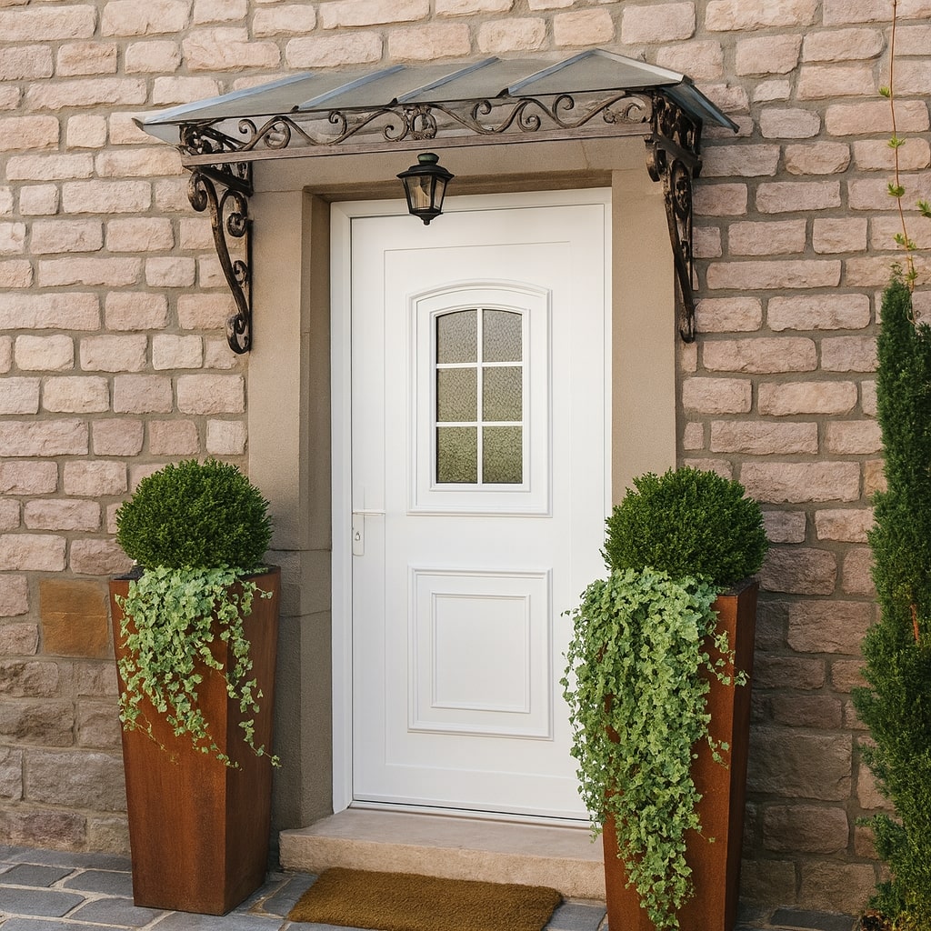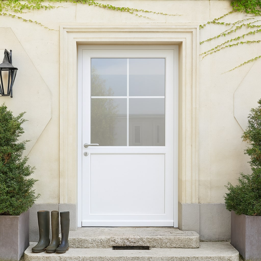 Nos portes PVC s’appuient sur des profilés multi-chambres, joints périphériques et seuil thermique pour garantir l’étanchéité air/eau/vent.